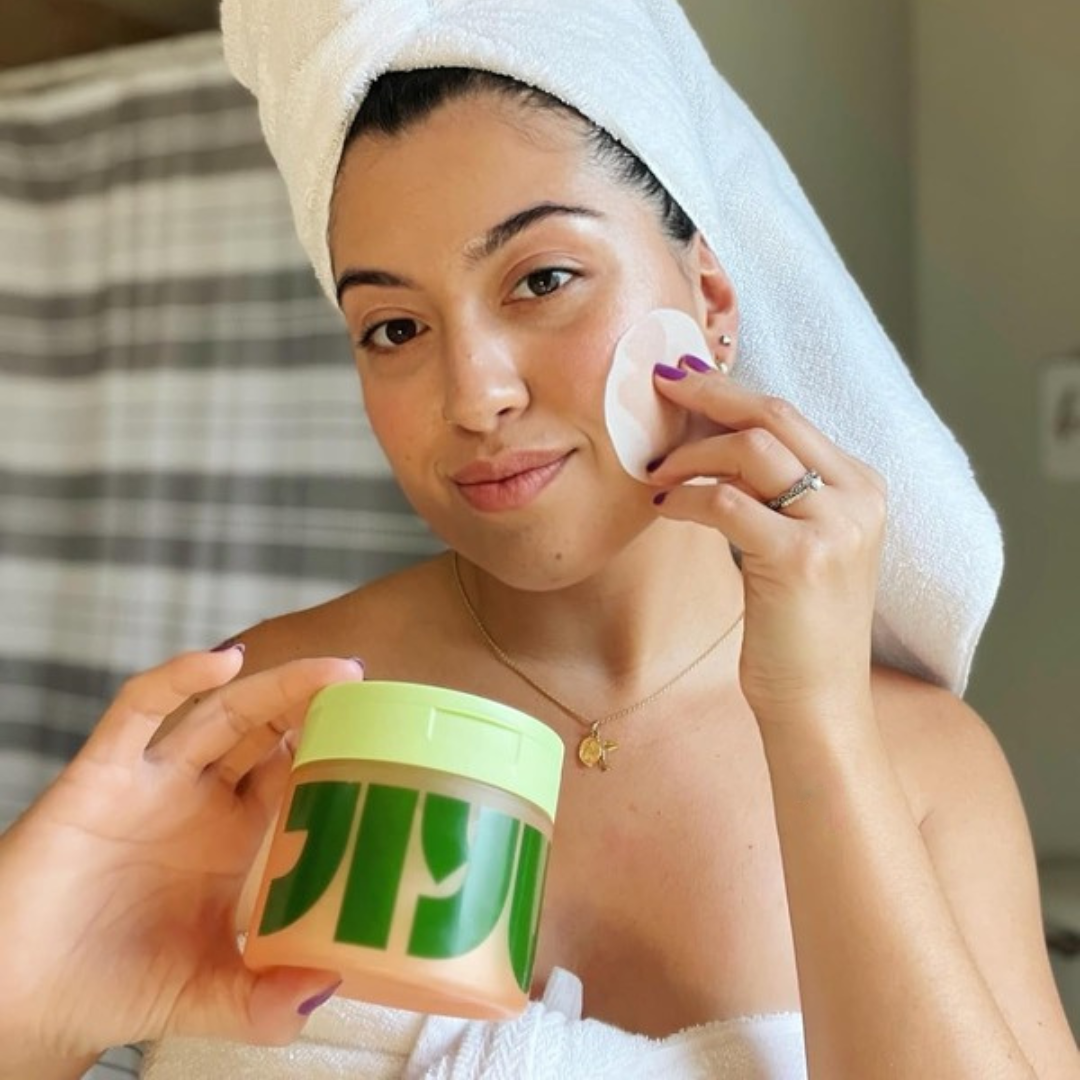 Each pad is soaked in a pigment-fighting, wrinkle-smoothing serum that works deeper than regular toners: